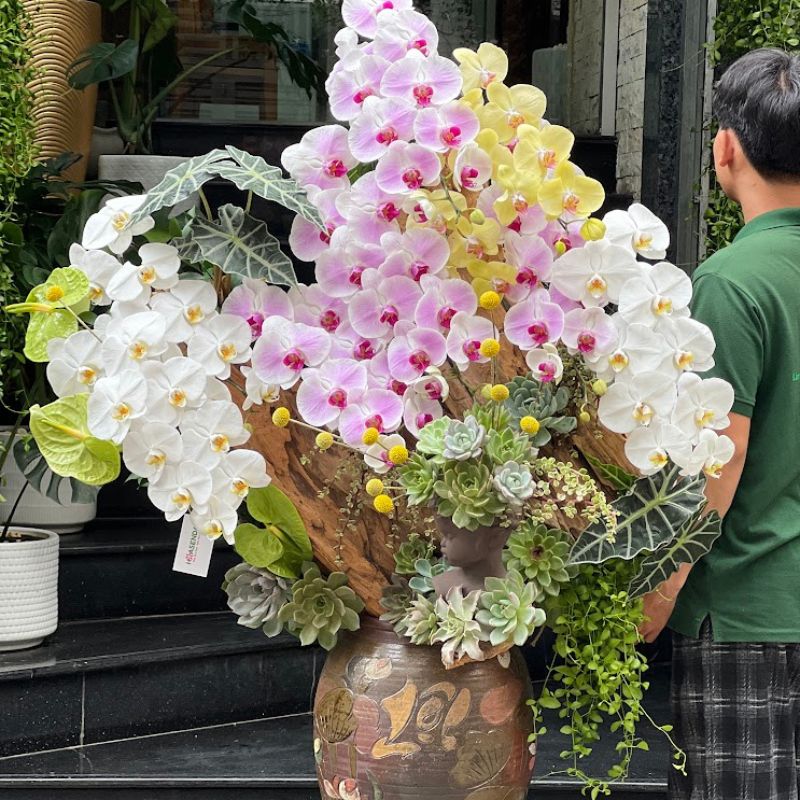 Chọn mẫu hoa lan hồ điệp mix sen đá uy tín tại HOA TƯƠI HOA MỸ