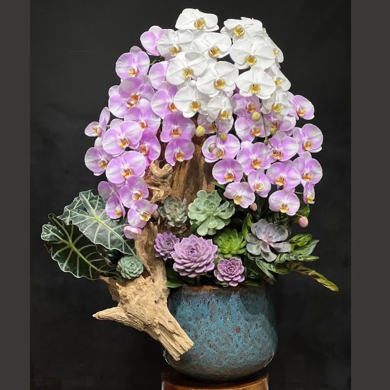 Độ bền: Hoa Lan Hồ Điệp được chọn lọc kỹ lưỡng, có thể bền đẹp từ 2-4 tuần. Đặc biệt, sau khi hoa tàn, phần sen đá và gỗ lũa vẫn tạo thành một tiểu cảnh trang trí bền bỉ theo thời gian.