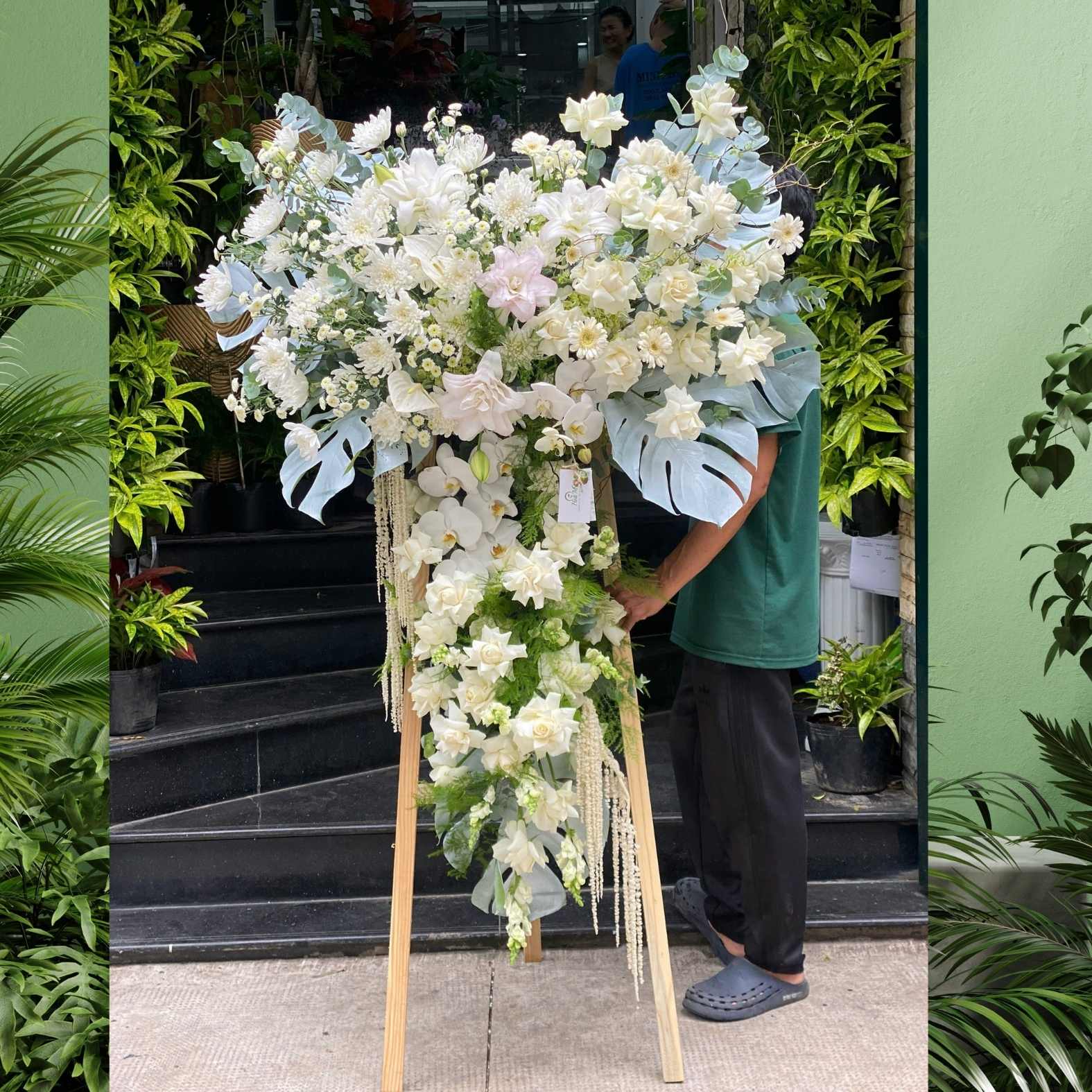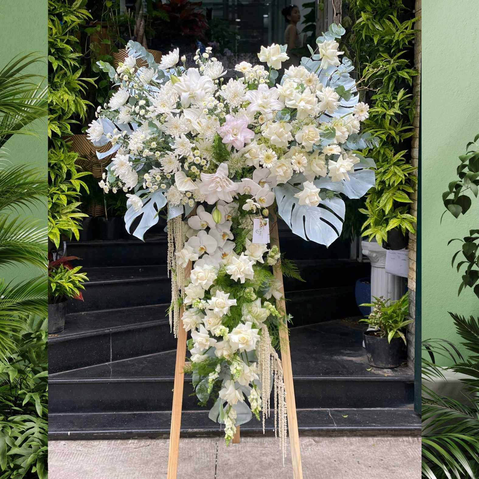 Kệ hoa chia buồn sang trọng với tông trắng giá bao nhiêu?