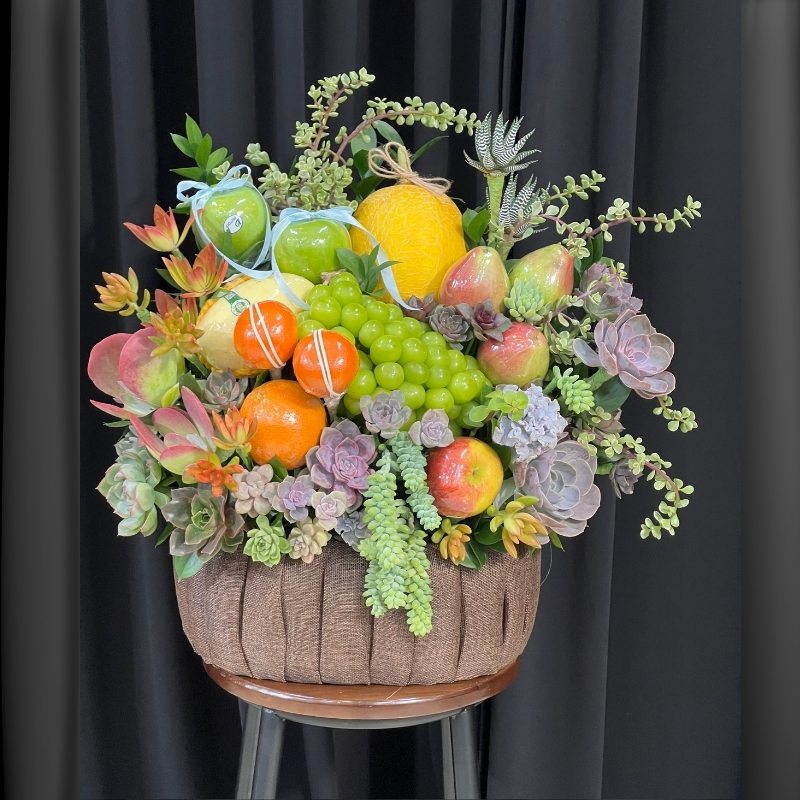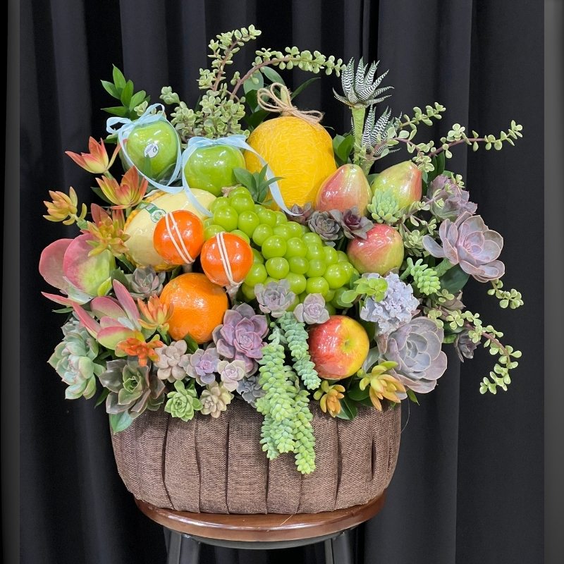 Giỏ hoa trái cây nhập khẩu mix sen đá có gì đặc biệt?