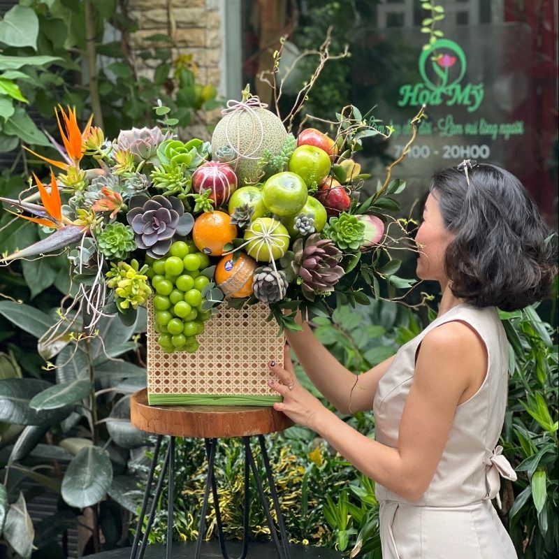 - Một giỏ trái cây kết hợp hoa tươi không chỉ là quà tặng vật chất mà còn là thông điệp yêu thương được gói ghém khéo léo.