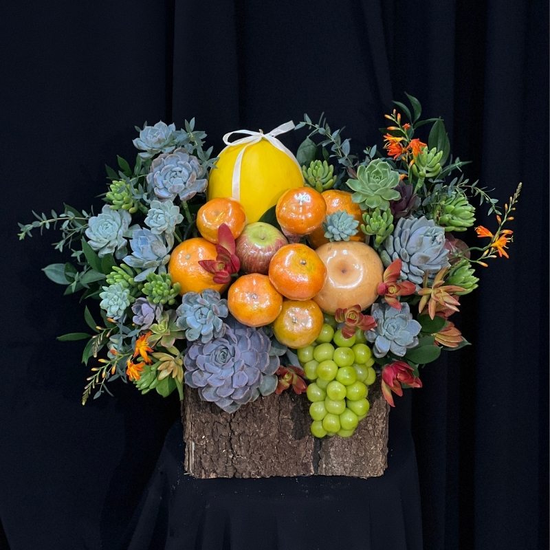 - Khi đặt cạnh trái cây tươi, tổng thể giỏ quà trở nên hài hòa, xanh mát và dễ chịu cho người nhìn.