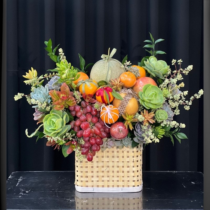 - Dịp Tết sum vầy, một giỏ hoa trái cây tươi tượng trưng cho sự đủ đầy, may mắn và lời chúc năm mới an khang.