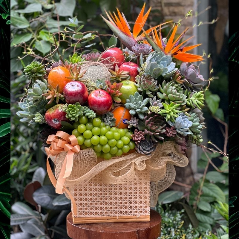 Lẵng hoa tươi và trái cây mix sen đá tại sao lại được ưa chuộng tặng khai trương?
