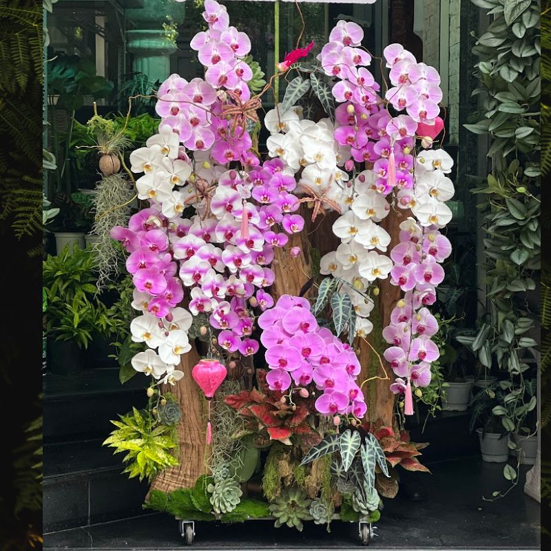 Đặc điểm của một shop hoa lan mix sen đá trồng trên lũa gỗ cao cấp